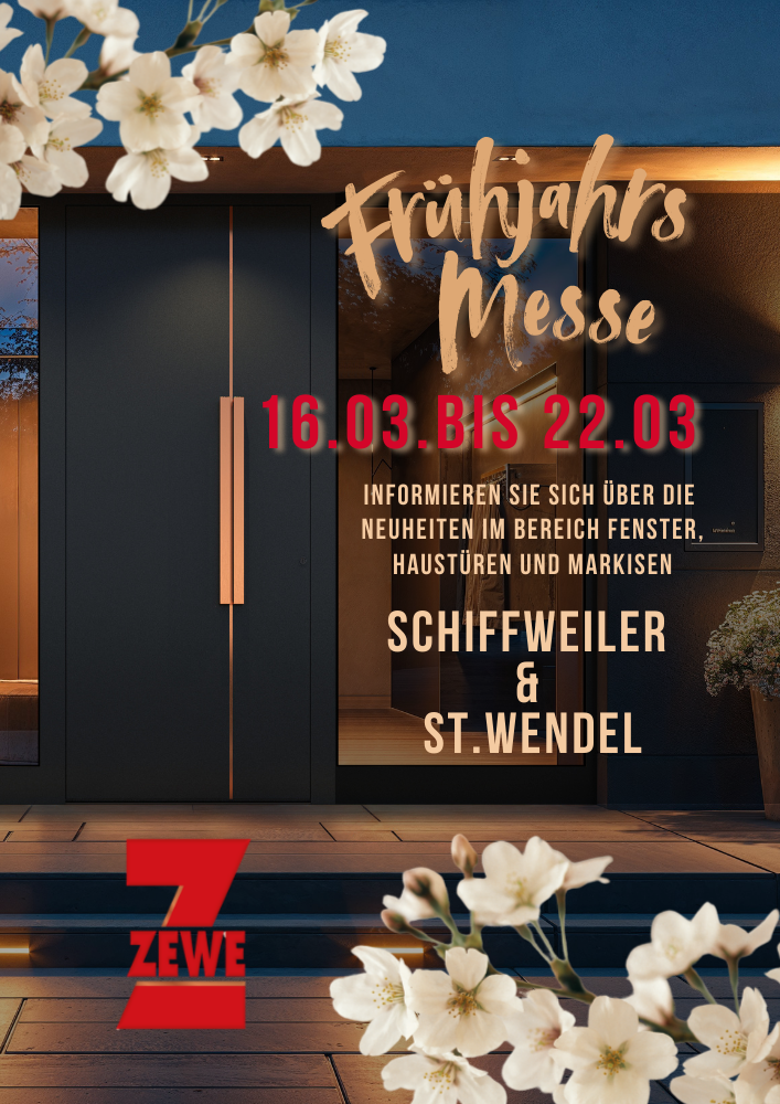 wir laden Sie herzlich zu unserer Frühjahrsmesse vom 16. März bis 22. März ein. Nutzen Sie die Gelegenheit, sich rund um die Themen Fenster, Haustüren und Markisen zu informieren und persönlich beraten zu lassen.